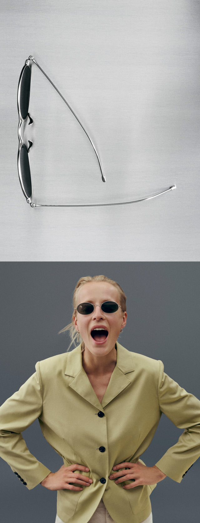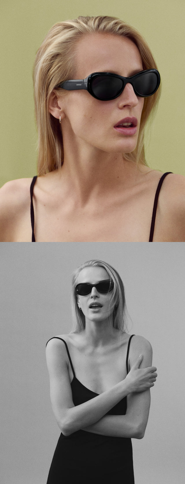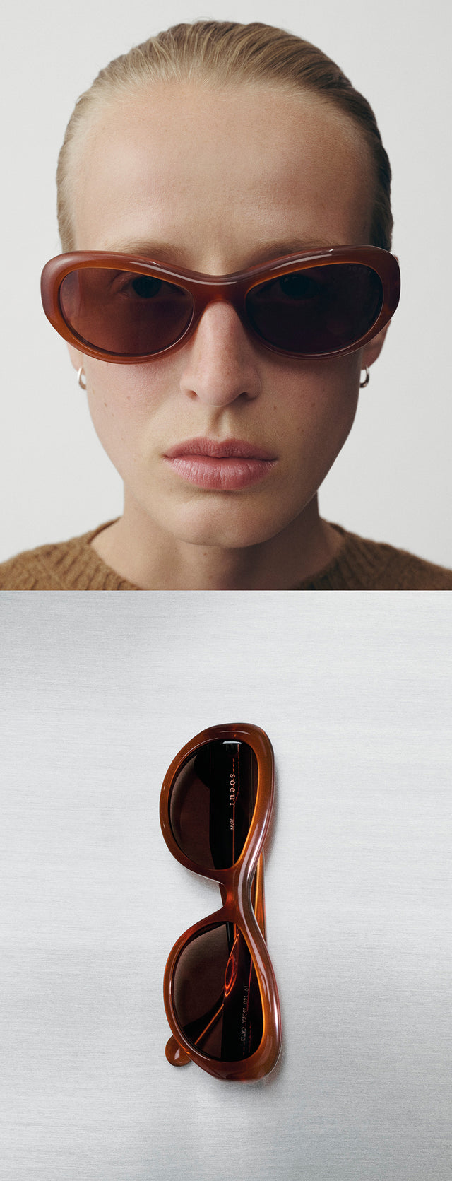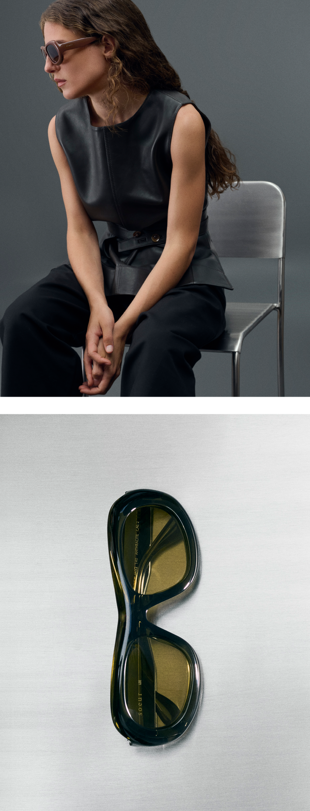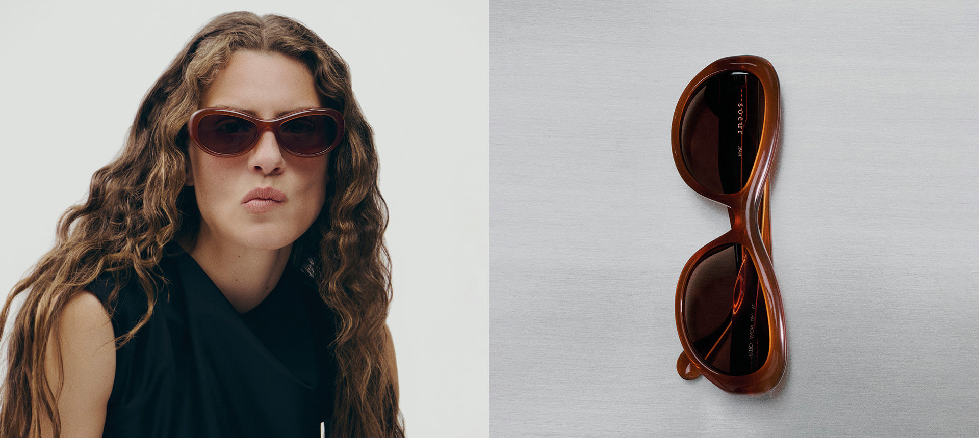 Soeur traslada su pasión por las líneas afirmadas y los colores en una gama de gafas de sol que se compone de tres modelos con sus correspondientes temperamentos. Lee,con su forma de máscara extragrande que se impone con sus líneas escultóricas contemporáneas; Jean de montura ojo de gato, que aporta delicadeza y feminidad al rostro; Amber con su marco metálico afilado, que encarna los trazos discretos de los años noventa.