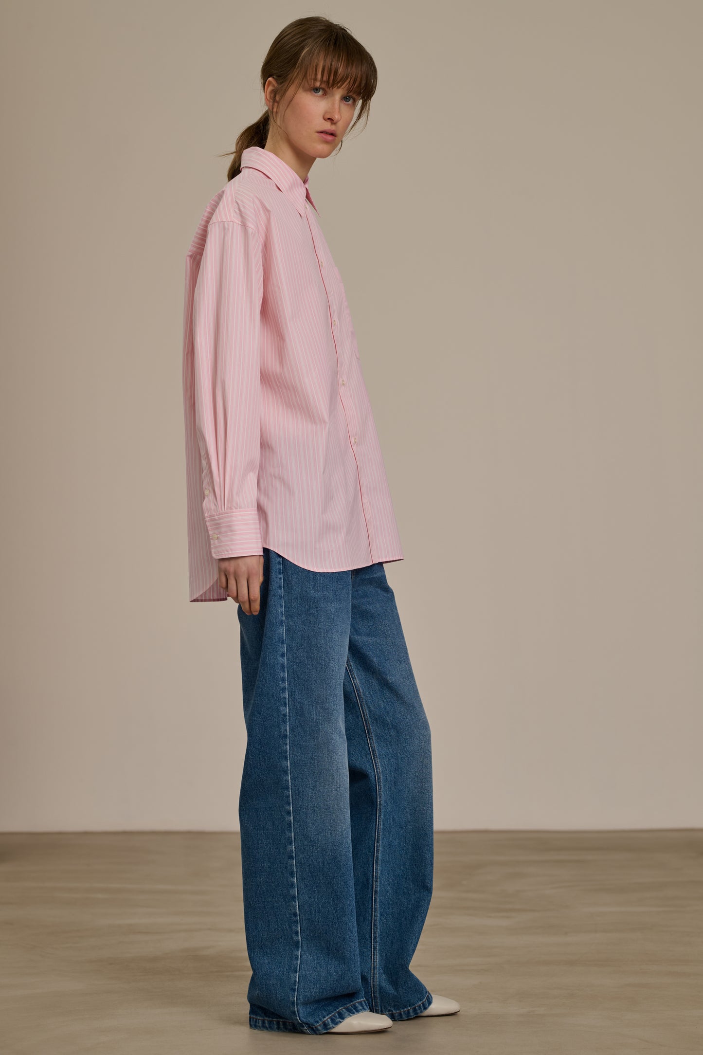 CARLOTTA es una camisa de popelina a rayas que apuesta por un corte oversize inspirado en el guardarropa masculino, para un estilo desenfadado y elegante.
