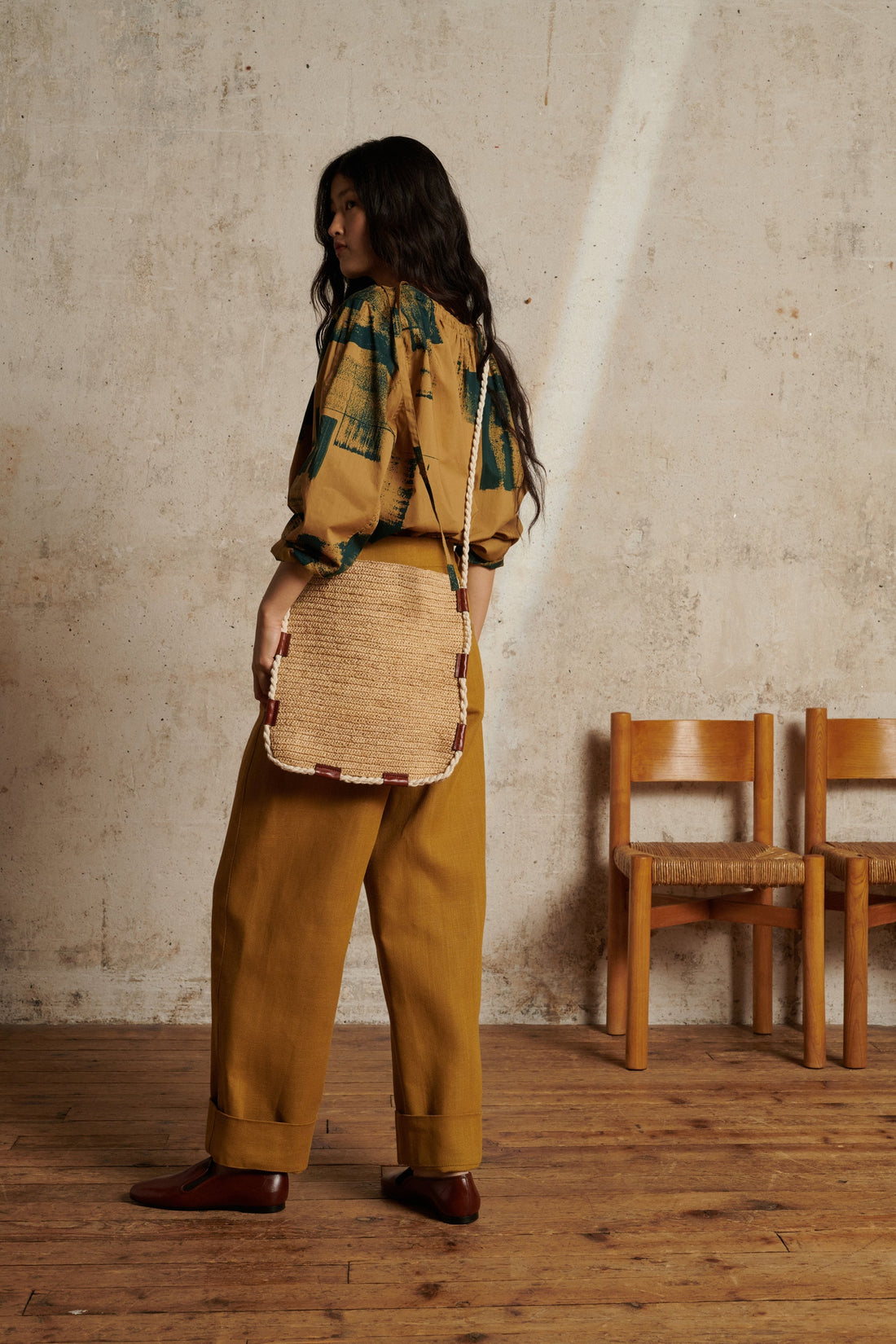 camisa uki Blusa de popelín de algodón estampada en azul y beige