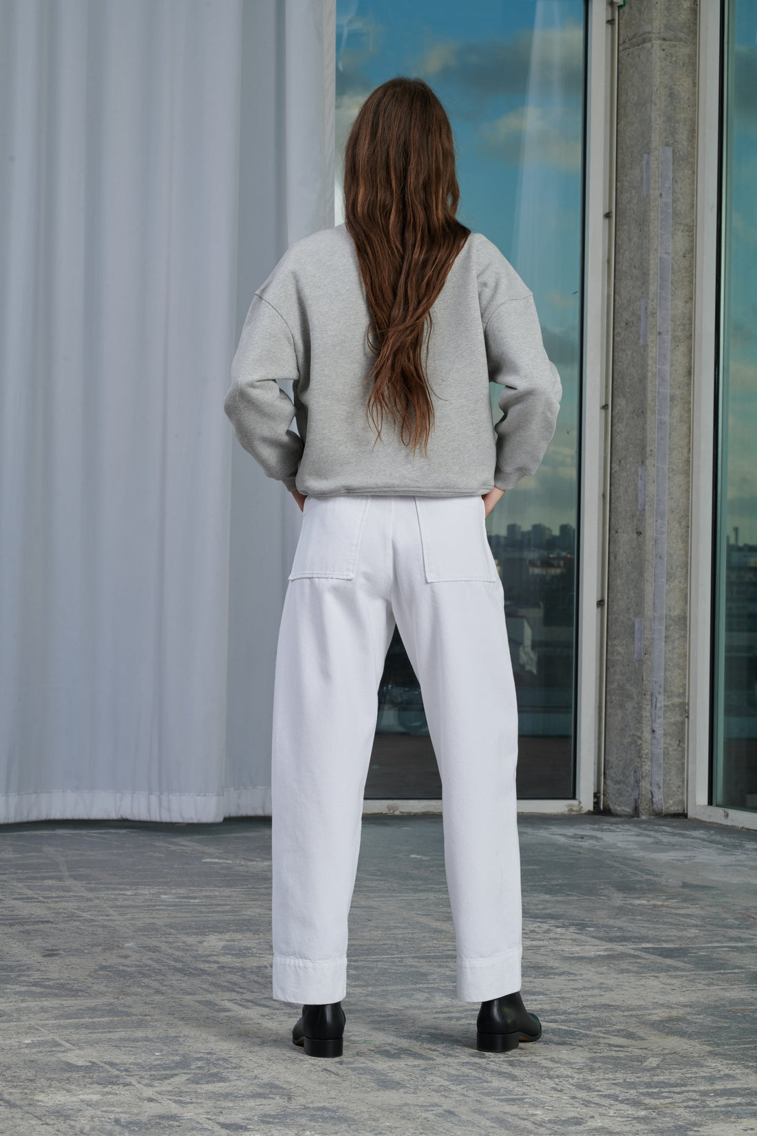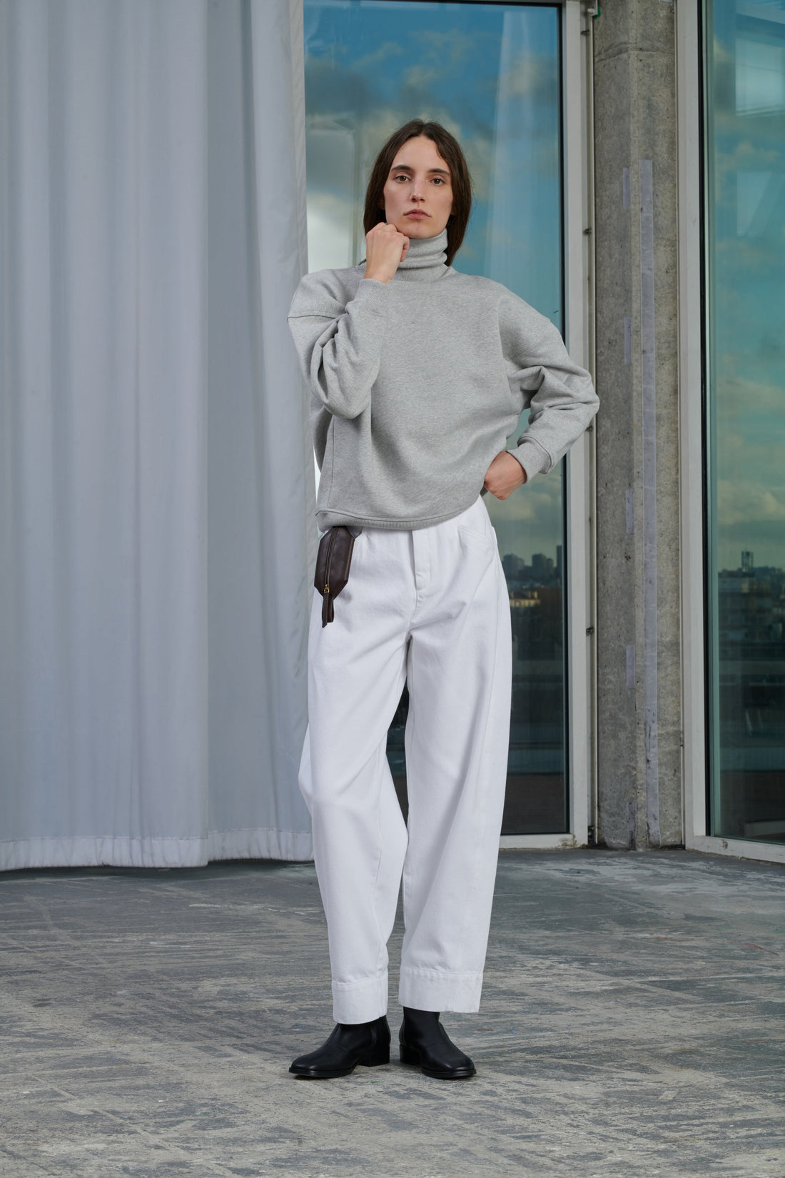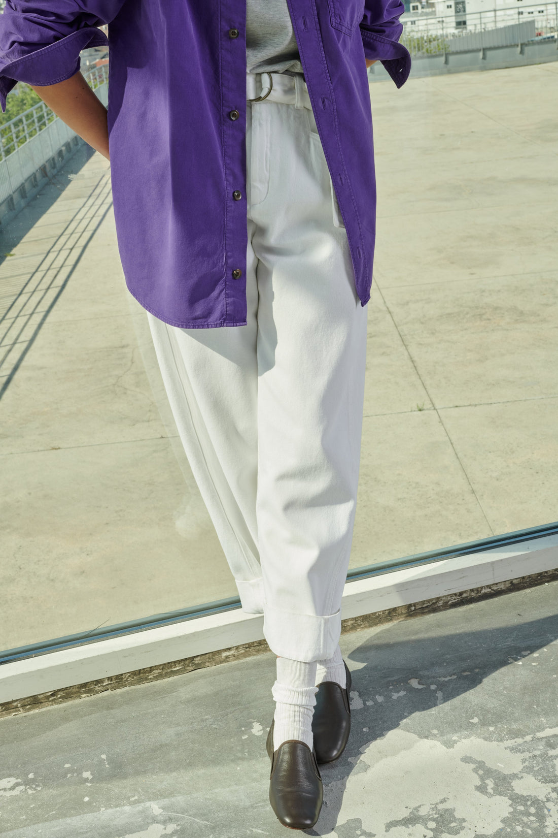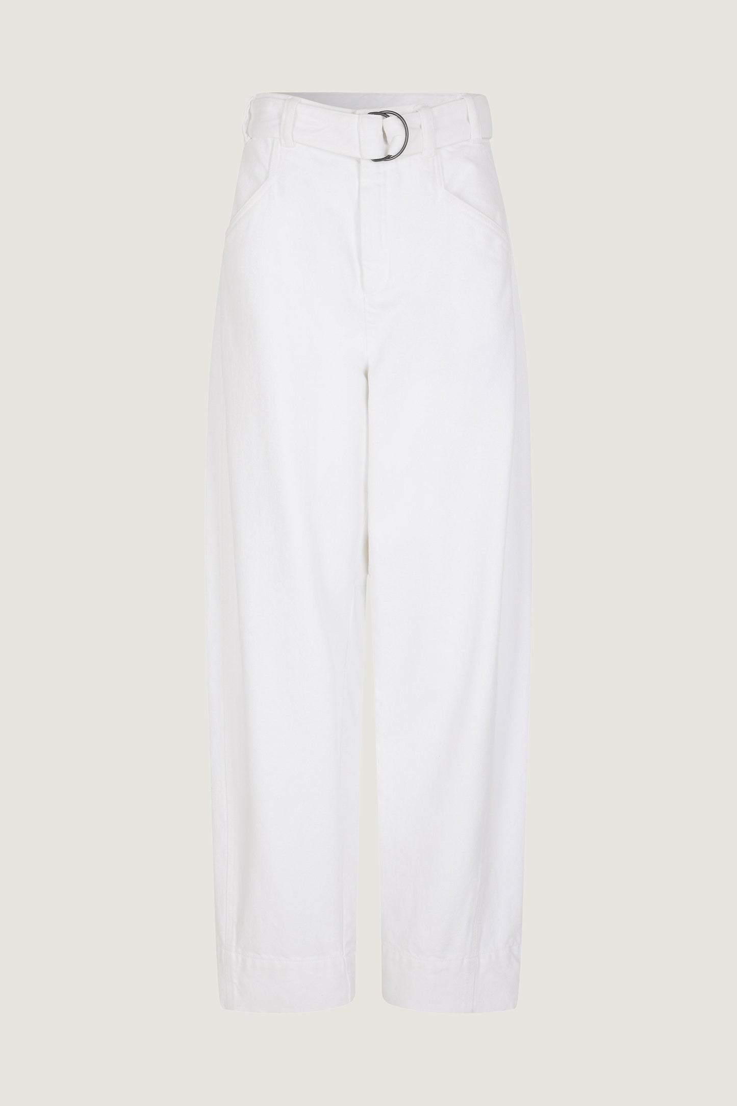Pantalón de cintura alta con cinturón de tejido vaquero blanco