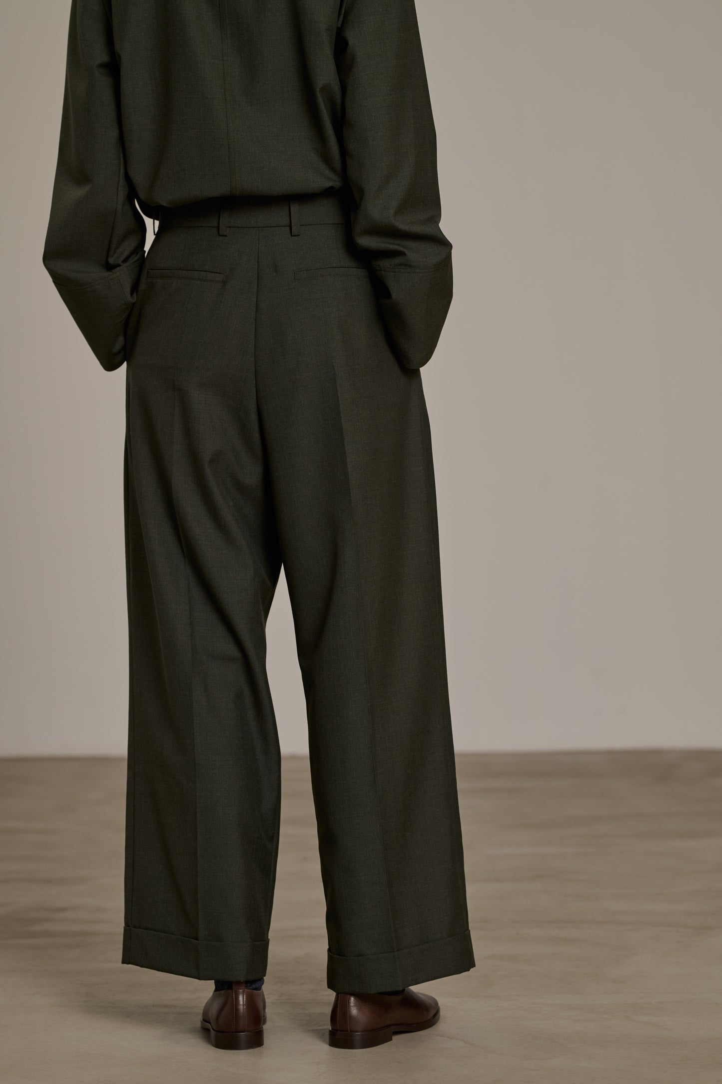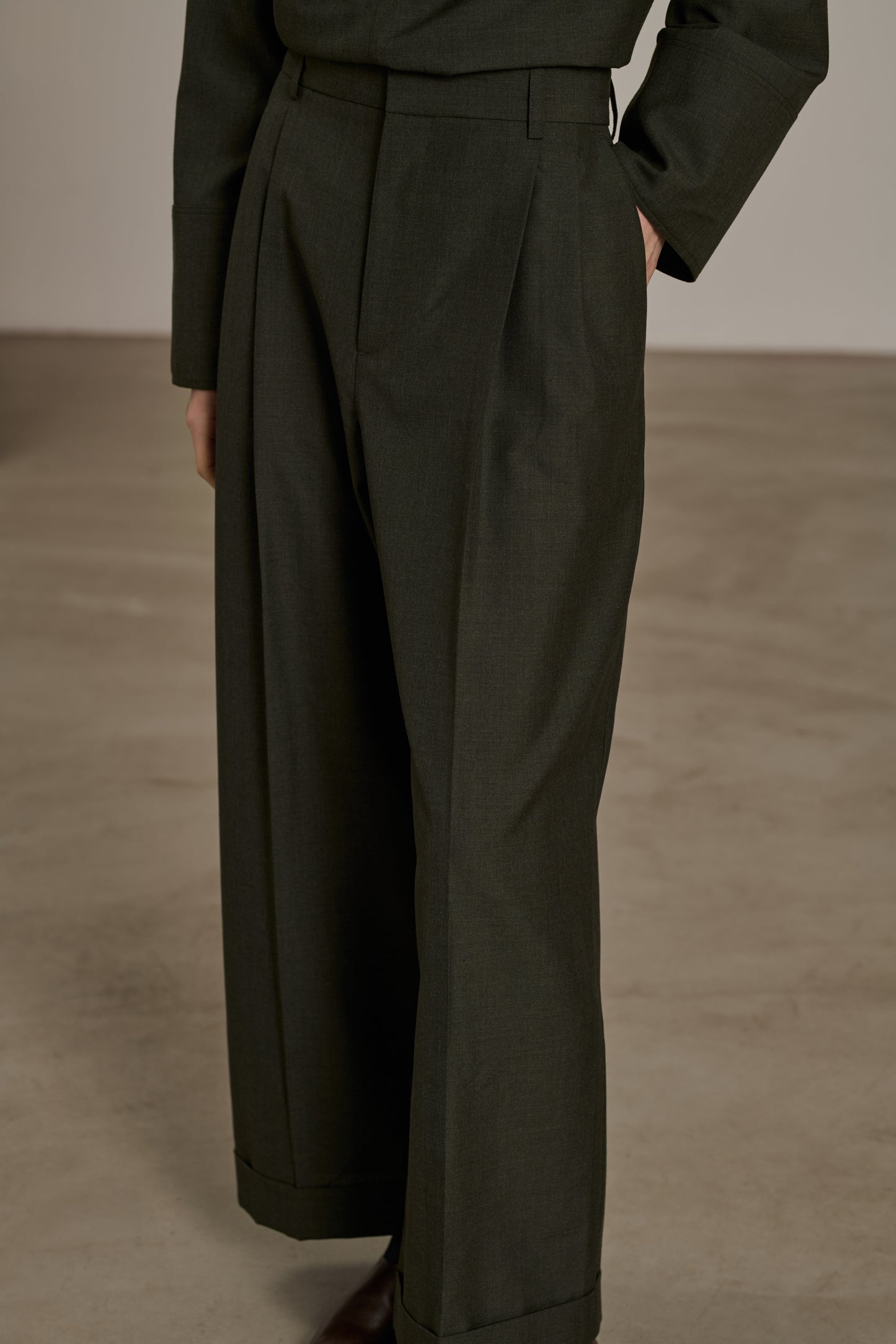 Pantalón con pinzas en tejido de lana jaspeada caqui