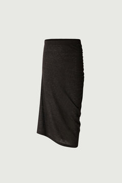 FLYNN es un jersey amplio de punto denso. La lana merino proporciona calor y confort, mientras que el tejido compacto asegura un excelente soporte en el cuello alto abierto. Su corte de estilo couture contrasta con el canalé relajado, combinando elegancia y confort en pleno invierno.