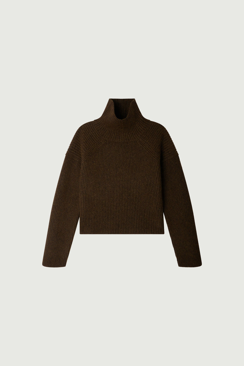 Jersey de manga larga a cotes feutré marrón jaspeado
