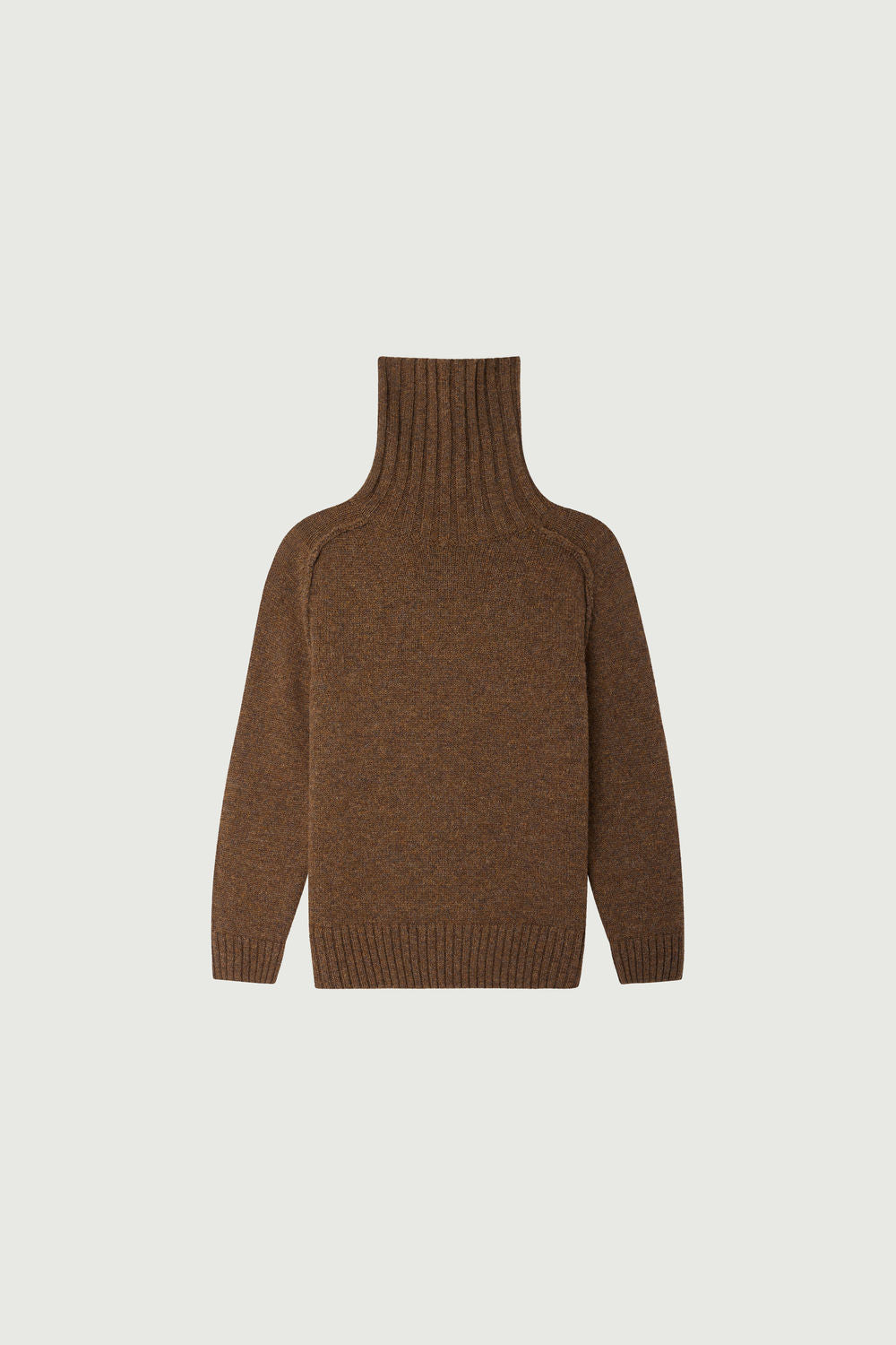 Jersey de cuello alto en lana y alpaca marrón jaspeado