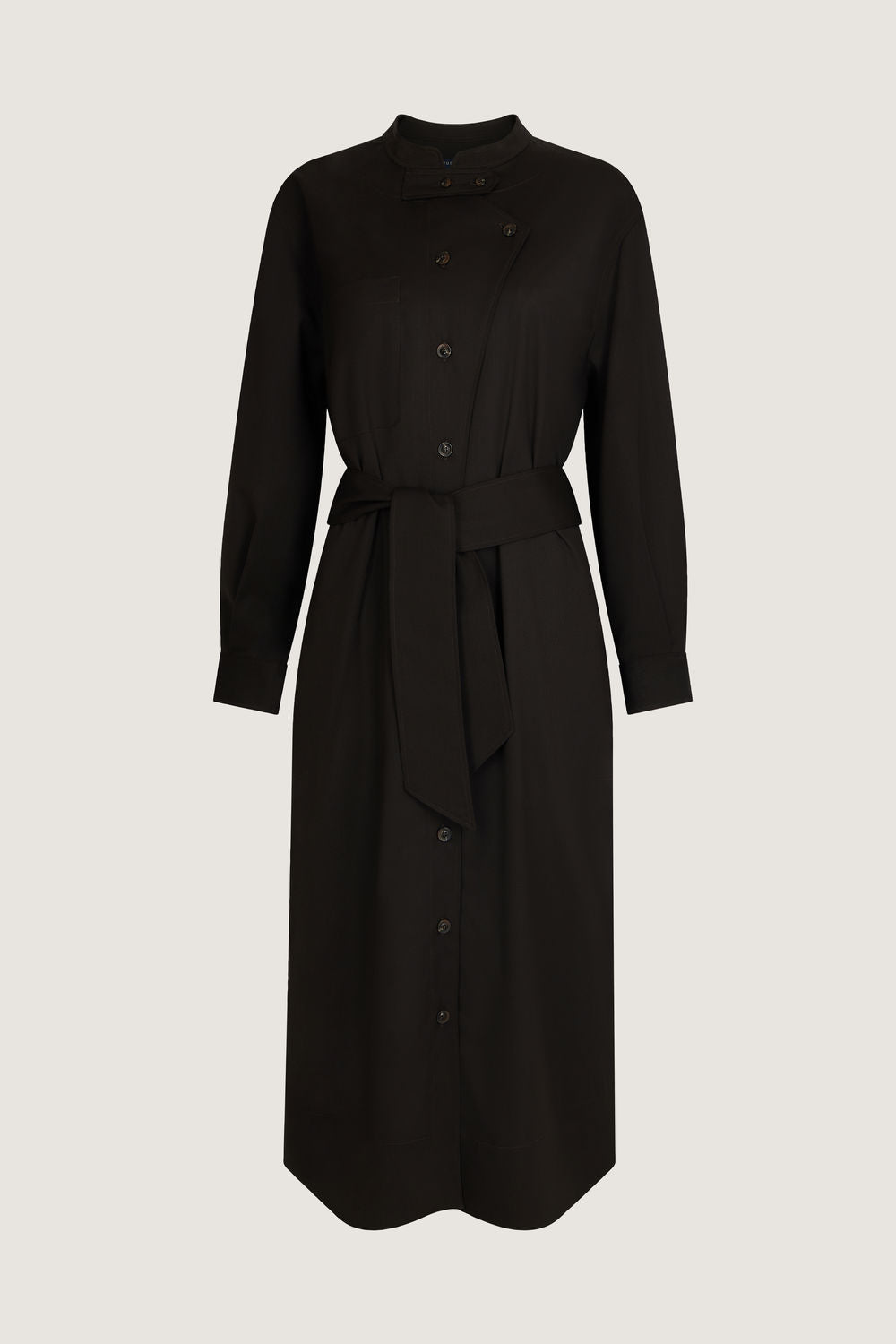 Vestido de gabardina de lana ligera marrón oscuro