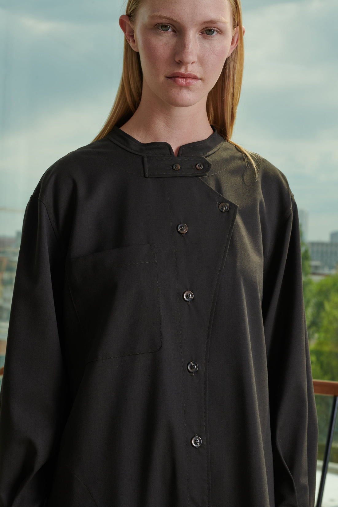 - Abertura abotonada asimétrica delante