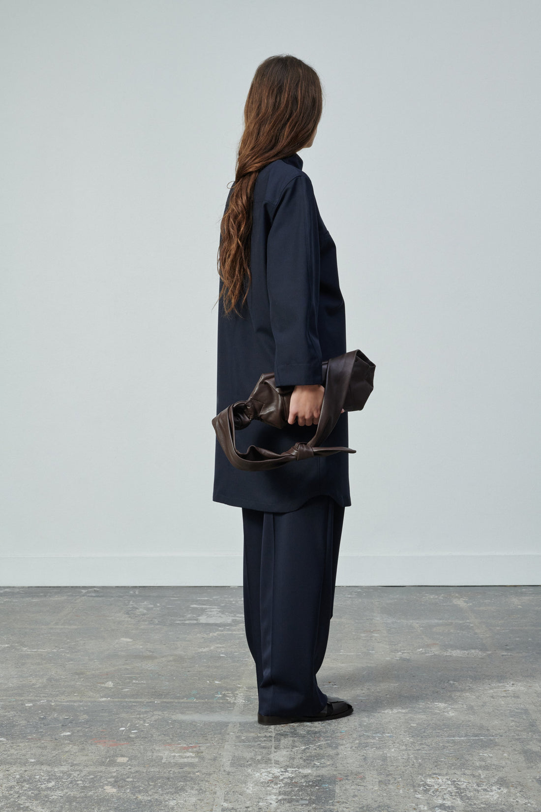 Vestido de tela de lana azul marino