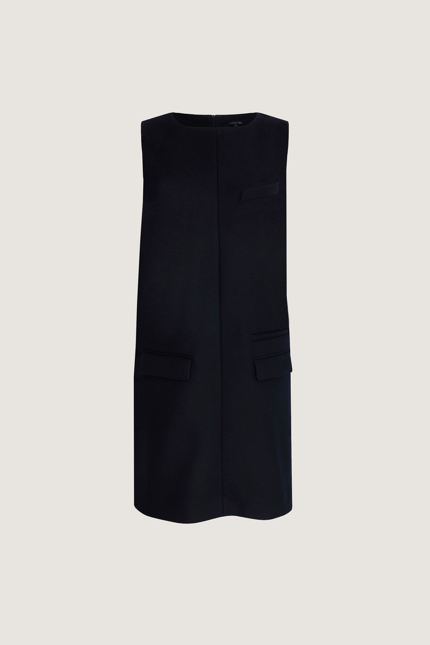 Vestido corto de paño de lana - Corte trapecio- Escote redondo- Pinzas delante- Abertura con cremallera oculta en la parte trasera