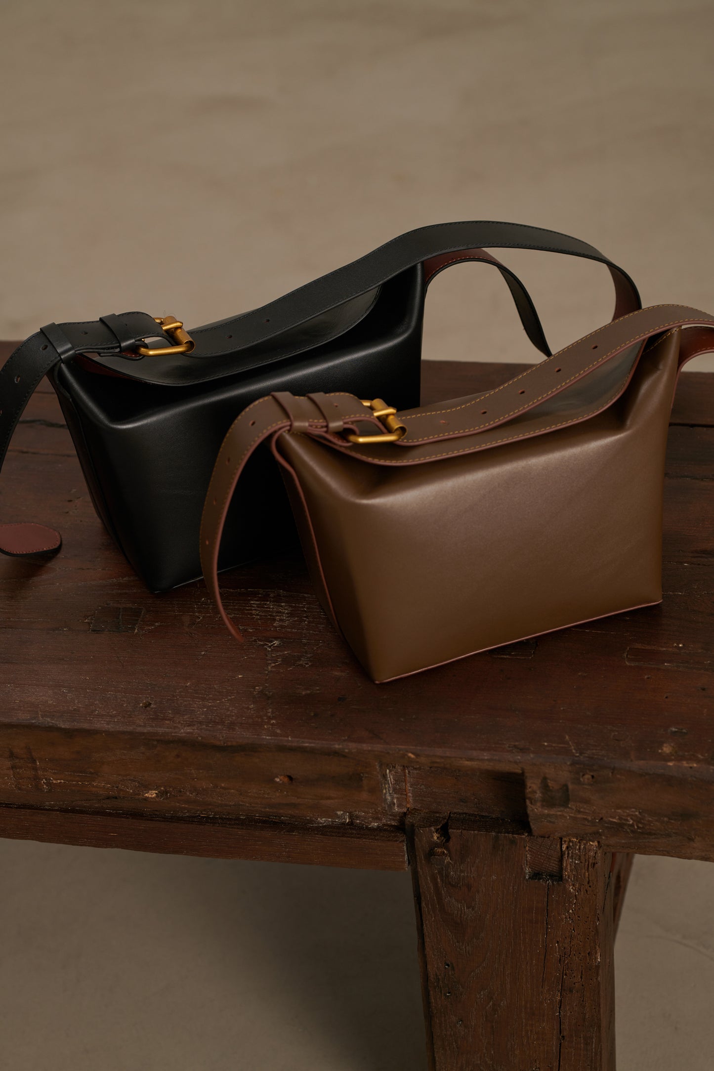 bolso solstice Bolso bicolor en cuero liso negro/cognac