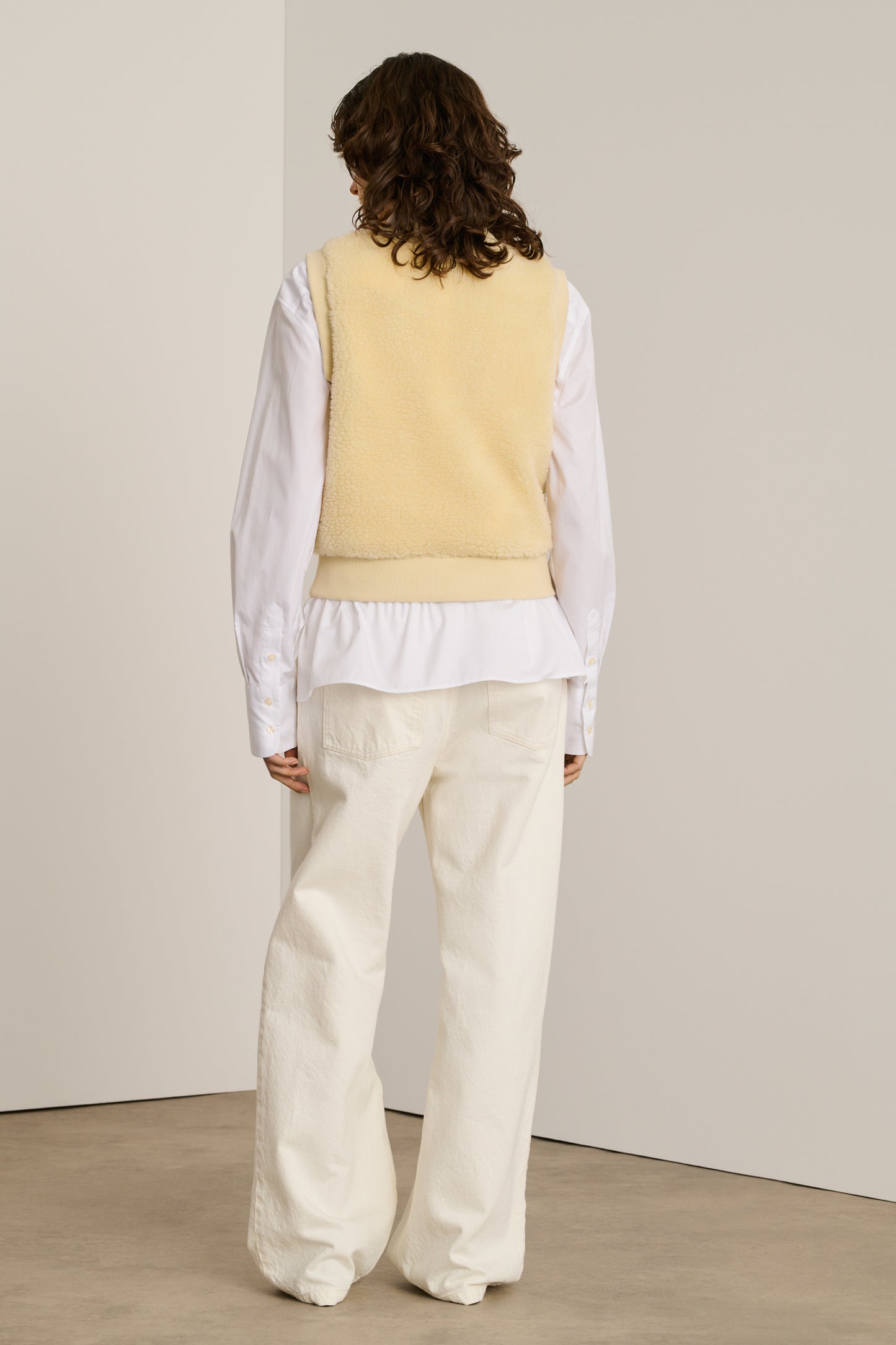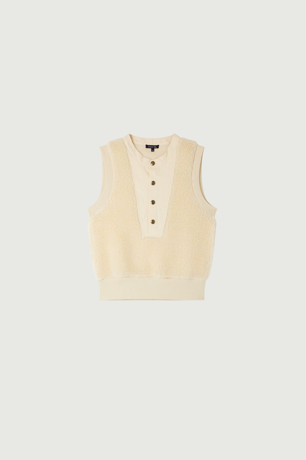 BAILA es una sudadera sin mangas de piel sintética. Su corte recto, sutilmente ajustado en la parte inferior del cuerpo, dibuja una silueta elegante al tiempo que ofrece libertad de movimiento. Ideal para superponer o llevar solo, esta sudadera combina calor y estilo.