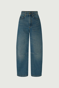 AGATHA es una chaqueta de tela vaquera gruesa, suavizada gracias a un lavado que conserva su intenso color azul índigo. Su corte sin forro es cuadrado y corto. Sus brandeburgos (cierres con lazos) y sus acabados ribeteados son detalles inspirados en la ropa de oficial.
